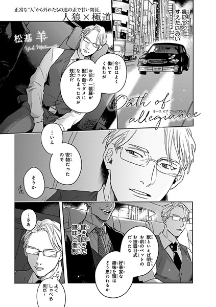 "Beast men" and humans have always been locked in conflict. Although treaties exist in an attempt to halt their battles, the prejudice between them can never be eradicated. Yakuza Haruomi Tengeji is an outlier among his group, who quietly laments that he must fight against the beast men. However, his fellow group members know that he only feels this way because of a certain "pet" waiting for him at home. Ever since being taken in by Haruomi years ago, the half-wolf and half-human Rou has shared a special bond with the man. Rou's oath to follow Haruomi anywhere binds their paths tightly together, even as it leads them both to the depths of hell. [Written by MAL Rewrite]